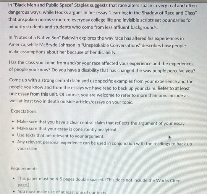 In Black Men And Public Space Staples Suggests That Chegg Com